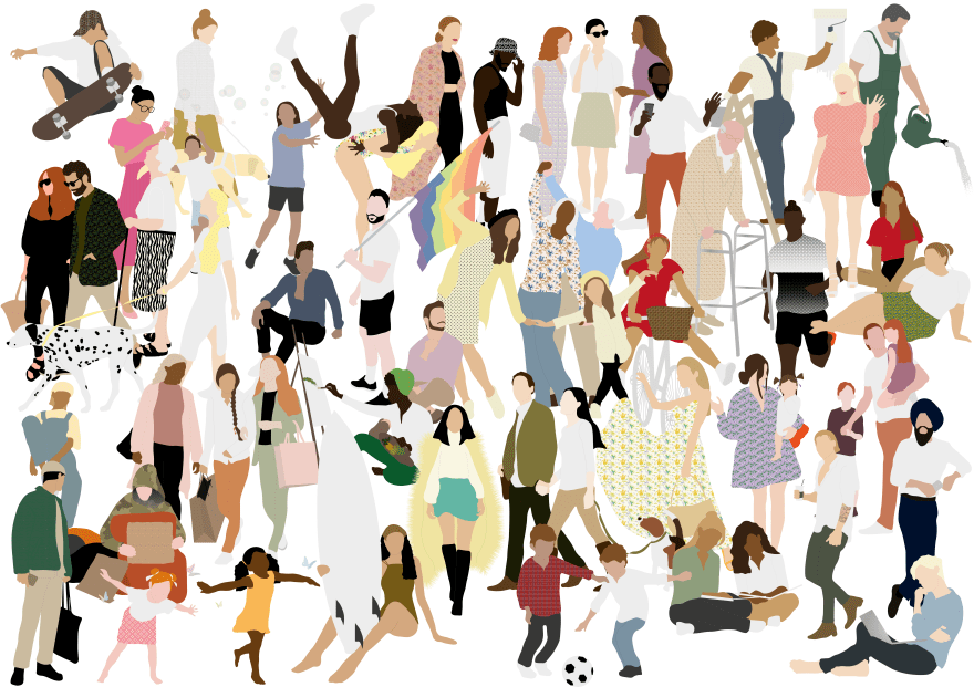Vector people are a good alternative to the standard photographed person png. You can create them yourself on Adobe Illustrator, and make them as abstract as you want. They allow for a high level of customisation i.e. you can alter the style/ colour of their clothes. They are also readily available on the internet however, I would recommend purchasing a pack for the continuity of style. I have created some free, high-quality and diverse vector people to download as pngs, click here to use them.
